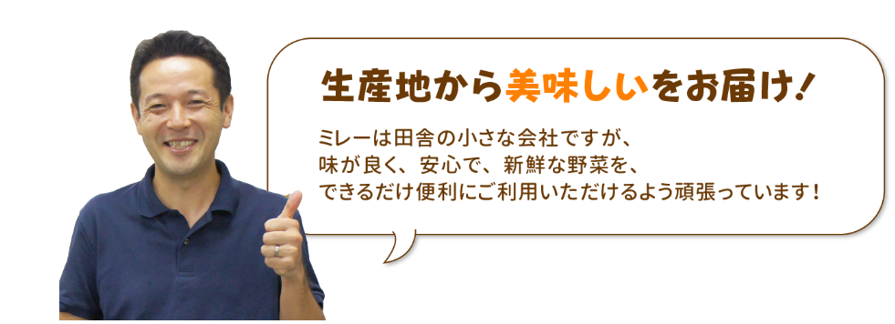 ミレーは、千葉県香取郡多古町を拠点に、契約農家から届く新鮮な朝穫り野菜を“その日のうちに発送”する、人気の産直サービス。